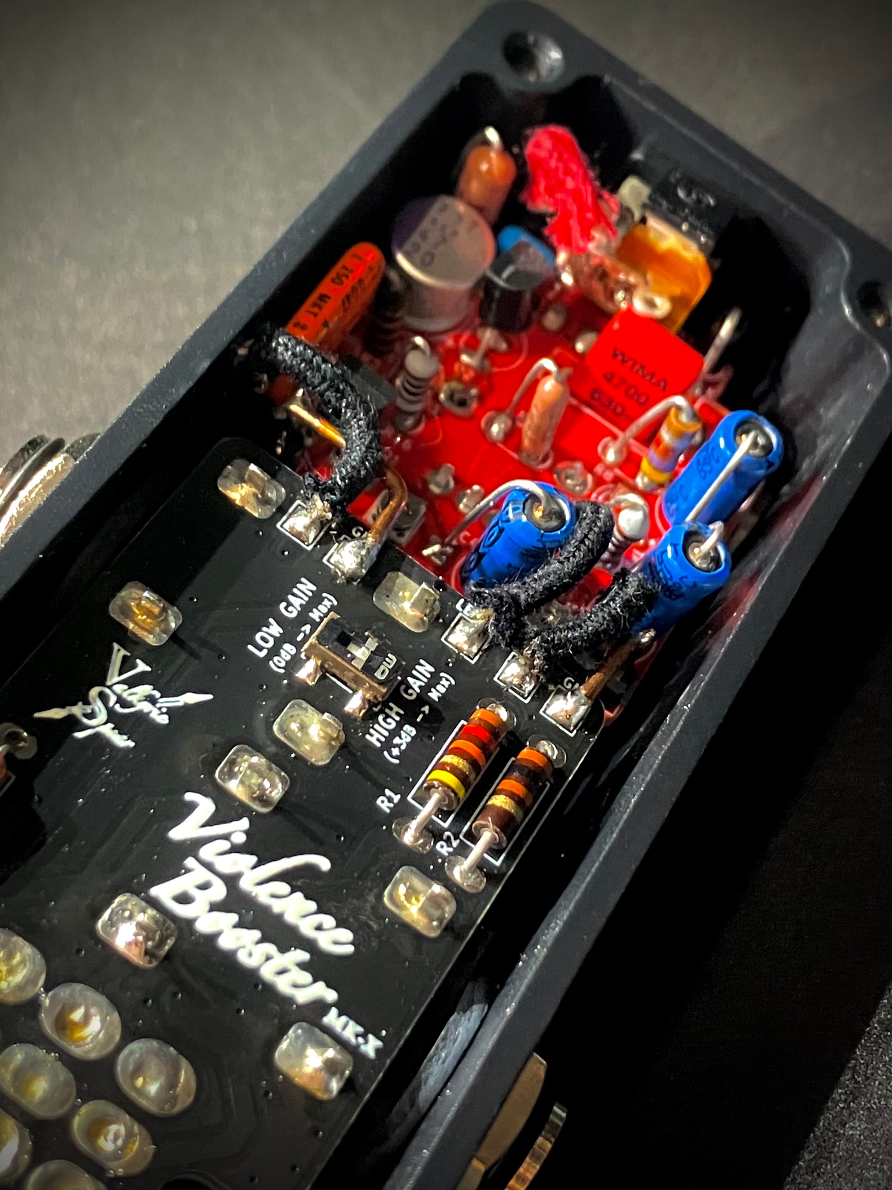 Violence Booster MK-X is the flagship boost pedal of Valkyrie Spear, continuing the legacy of Valkyrie Spear’s iconic Violence Booster MK II. It boasts a fully discrete circuit built with carefully selected components and mainboard that combines vintage parts and high-quality parts, enhancing both functionality and sound quality compared to its predecessor.